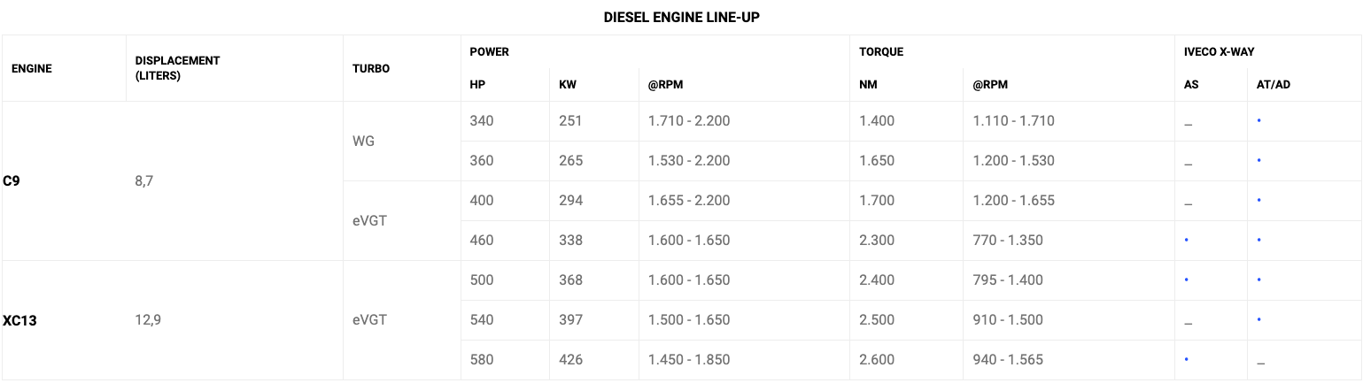 Se brosjyrene for fullstendig informasjon om IVECO X-Way