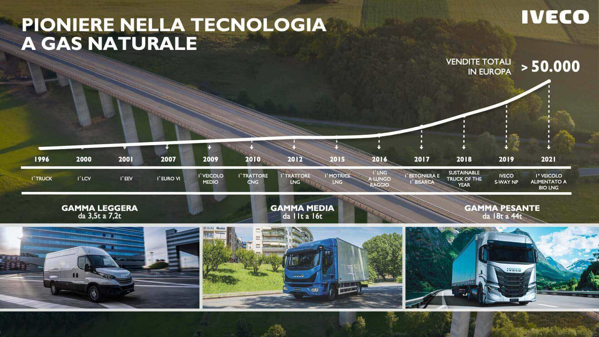 Takket være intensiv utvikling helt siden 1996 har IVECOs gassdrevne kjøretøy vist at de er modne og fungerer perfekt når det gjelder pålitelighet, miljøfokus og avkastning på investeringen – både ved lokale oppdrag og ved mellomlange og lange transportoppdrag.
